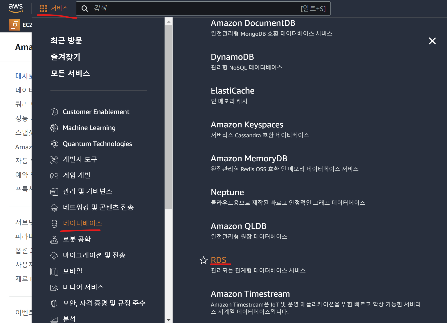 저희는 2번째 AWS에 RDS을 사용하여 관계형 데이터 베이스를 만들어봅시다!!!