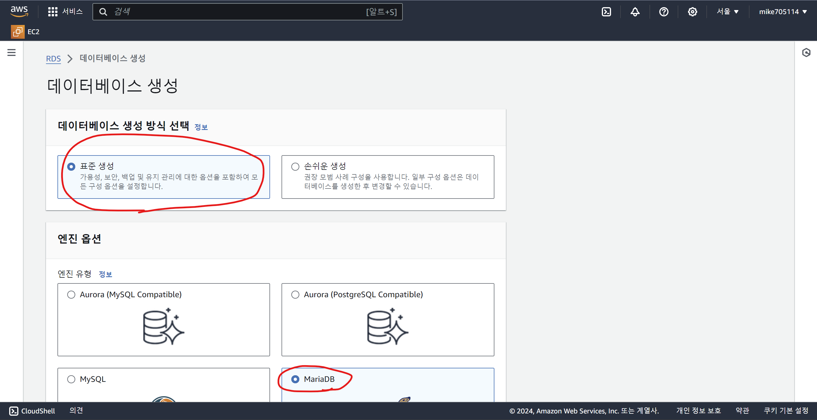 - 마스터 사용자 이름/암호: DB에 접속할 때 필요하니 까먹지 않게 유의합시당!