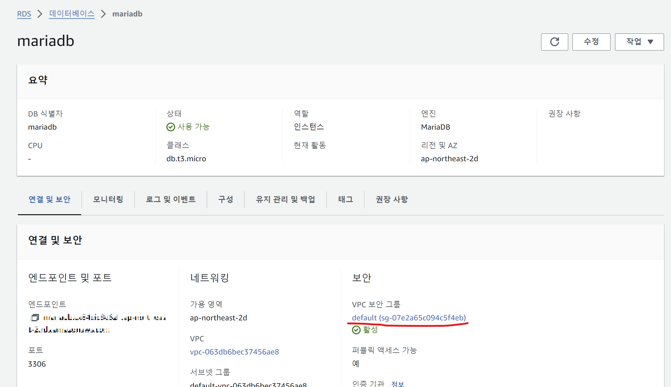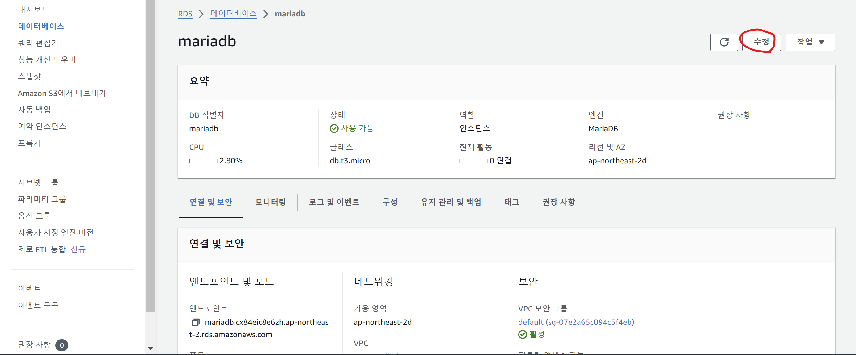 RDS를 생성한 후 아래의 설정을 필수적으로 해줘야 한다