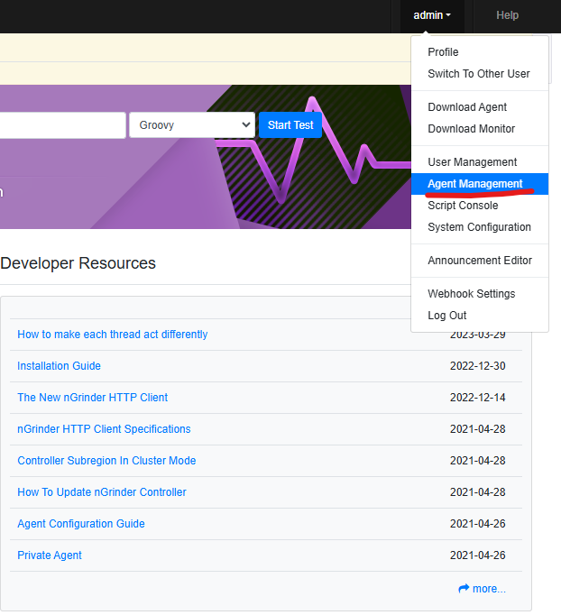 ※ nGrinder는 스프링 기반이여서 Spring 로고가 뜨는것을 확인할 수있습니다.