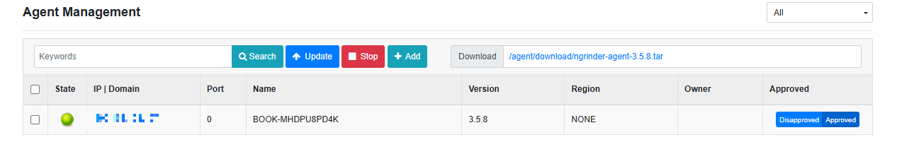 - 실행한 Agent가 목록에 표시되고 활성화(Active) 상태로 표시됩니다.