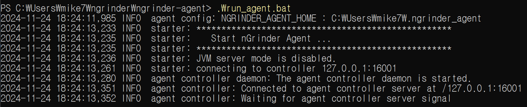 - 예: C:\Users\mike7\ngrinder\ngrinder-agent