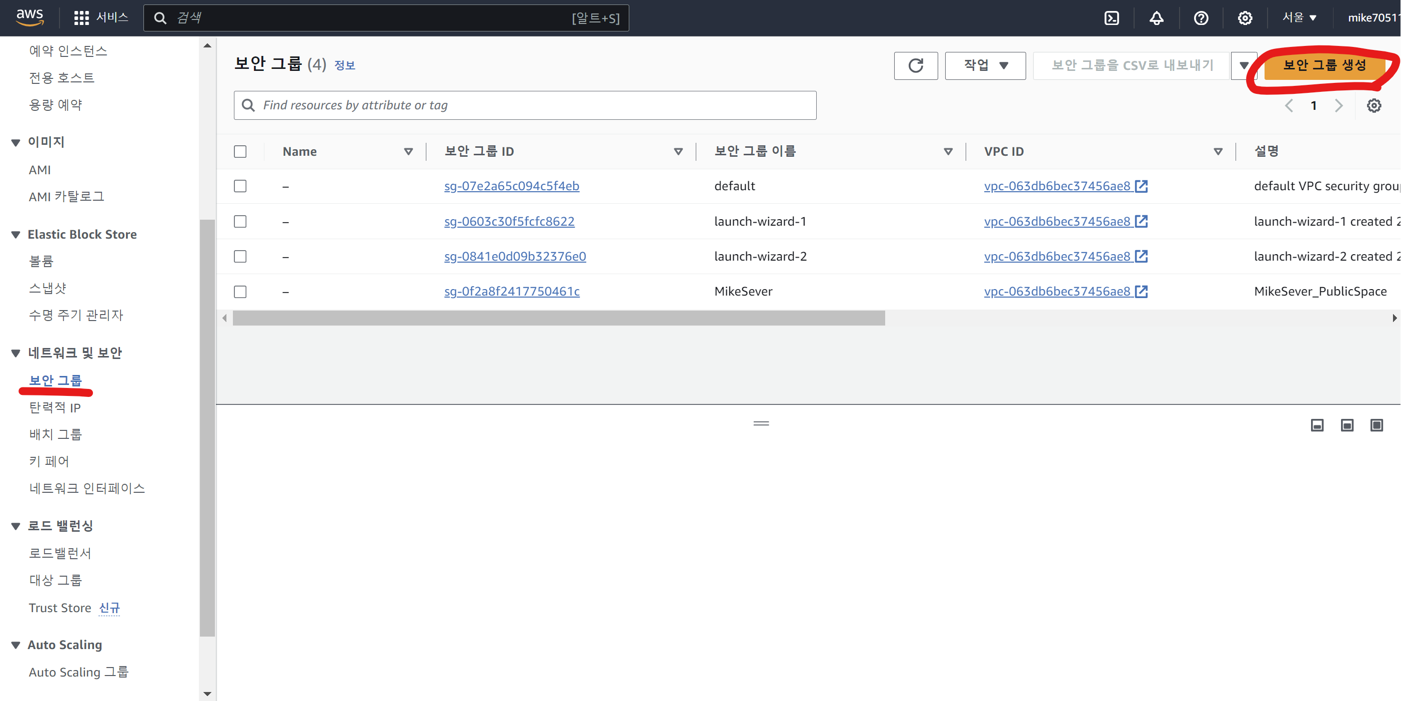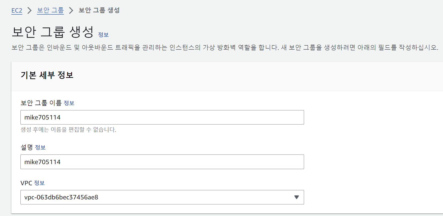 작성을 완료 했으면 아래에 보안 그룹 생성 버튼을 눌러주세요!