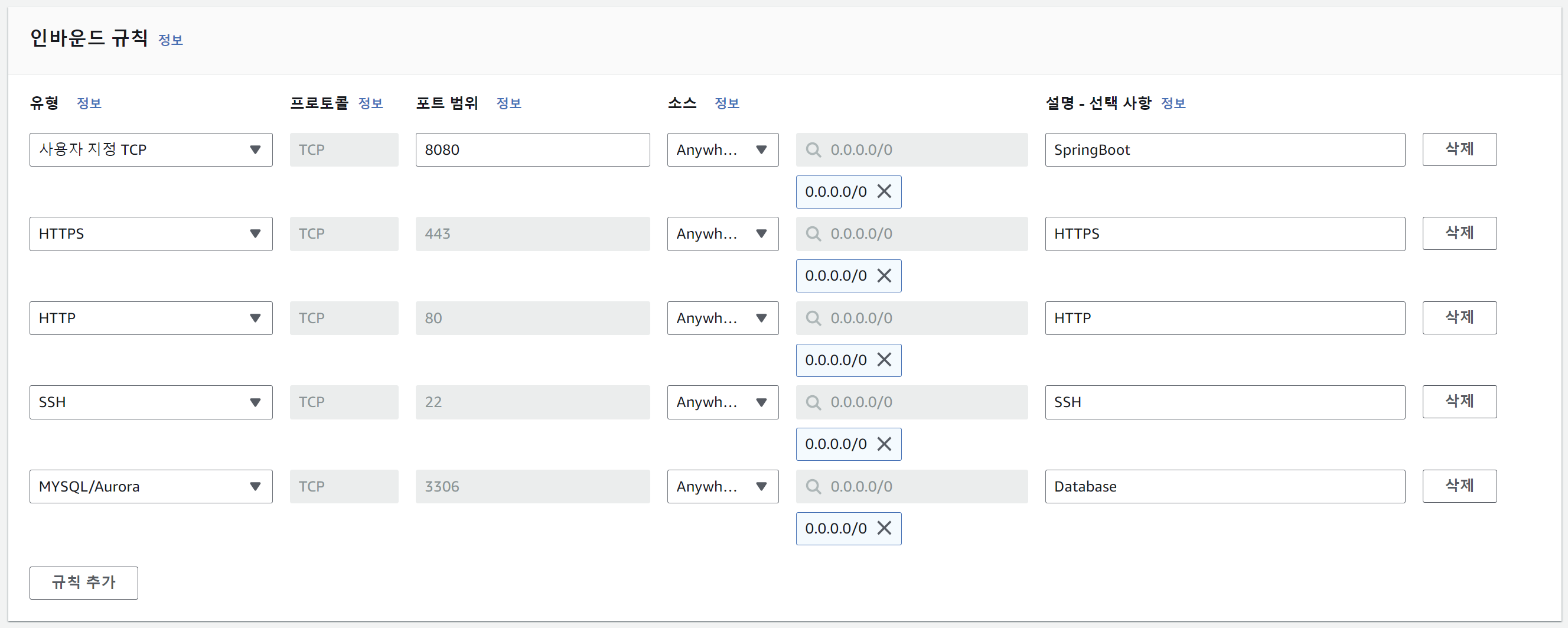 아래와 같이 인바운드 규칙을 작성해주세요!