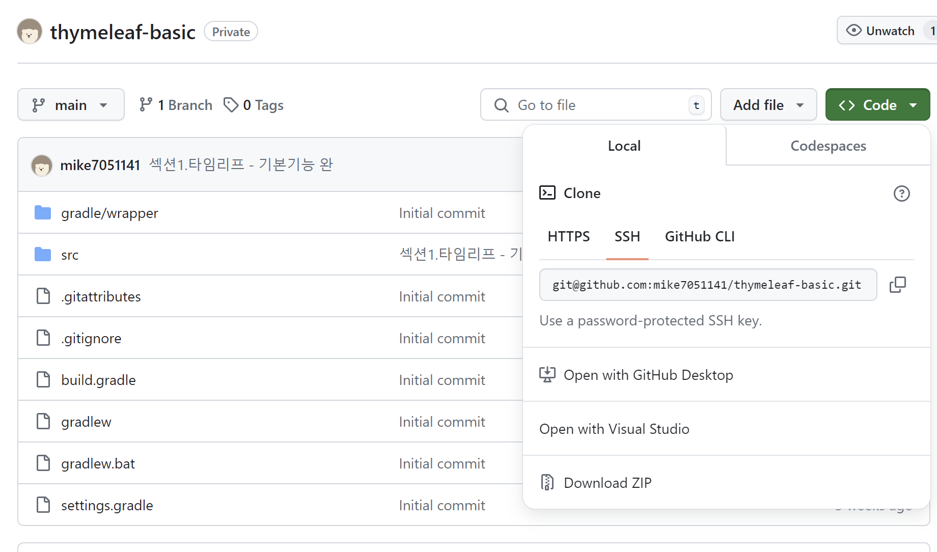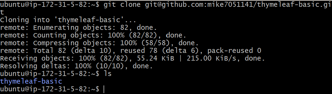 $ git clone [복사한 SSH 주소]