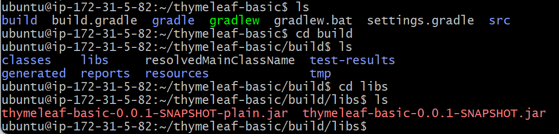 빌드가 완료되면 build/libs 디렉토리가 생성되고